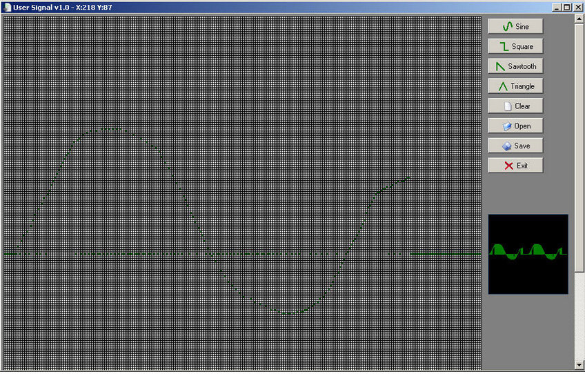 5 Там различных форм сигнала: синус, квадрат, треугольник, пилообразный, пользователь для получения частот.